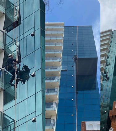 Ofrecemos servicios especializados de limpieza de cristales en altura, garantizando superficies impecables y sin residuos. Utilizamos técnicas seguras y productos de calidad para asegurar una visibilidad perfecta y prolongar la vida útil de las superficies. Nuestro equipo está capacitado para trabajar en todo tipo de estructuras, asegurando resultados profesionales y consistentes en cada proyecto.